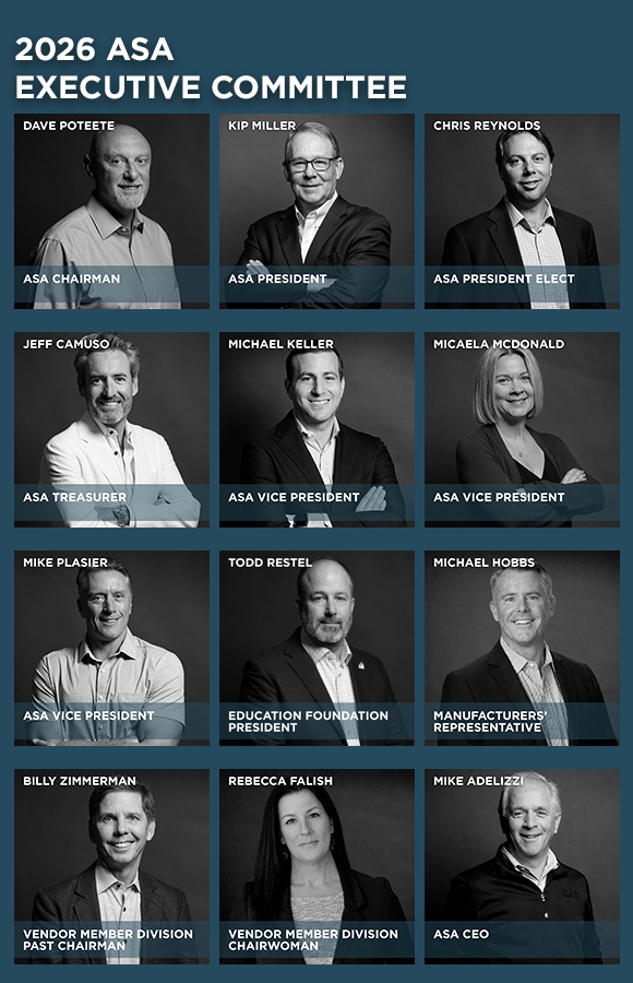 Thursday, February 26, 2026 / News Meet The American Supply Association’s Executive Committee Behind every successful association is a dedicated leadership team guiding its vision, strengthening its impact, and supporting its members. While ASA’s Board of Directors represents each segment of our industry and sets the strategic direction of the association, the Executive Committee plays a key role in guiding the day-to-day work of the association and staff. We are proud to introduce the 2026 ASA Executive Committee, a group of 11 committed leaders who bring experience, diverse perspective, and strategic insight to our association. This team works to advance the priorities established by the Board and volunteer leadership, upholds strong governance practices, and provides oversight into key initiatives that move ASA’s mission forward. Working closely with staff and Board members, the Executive Committee helps shape policy, guide important decisions, and ensures the association remains responsive to the evolving needs of our members and the industry – all while staying true to ASA’s core values. Their leadership reinforces transparency, accountability, and collaboration across the organization. Strong leadership thrives on strong collaboration – and with this team in place, ASA is well positioned for a successful year ahead. Print